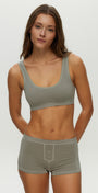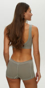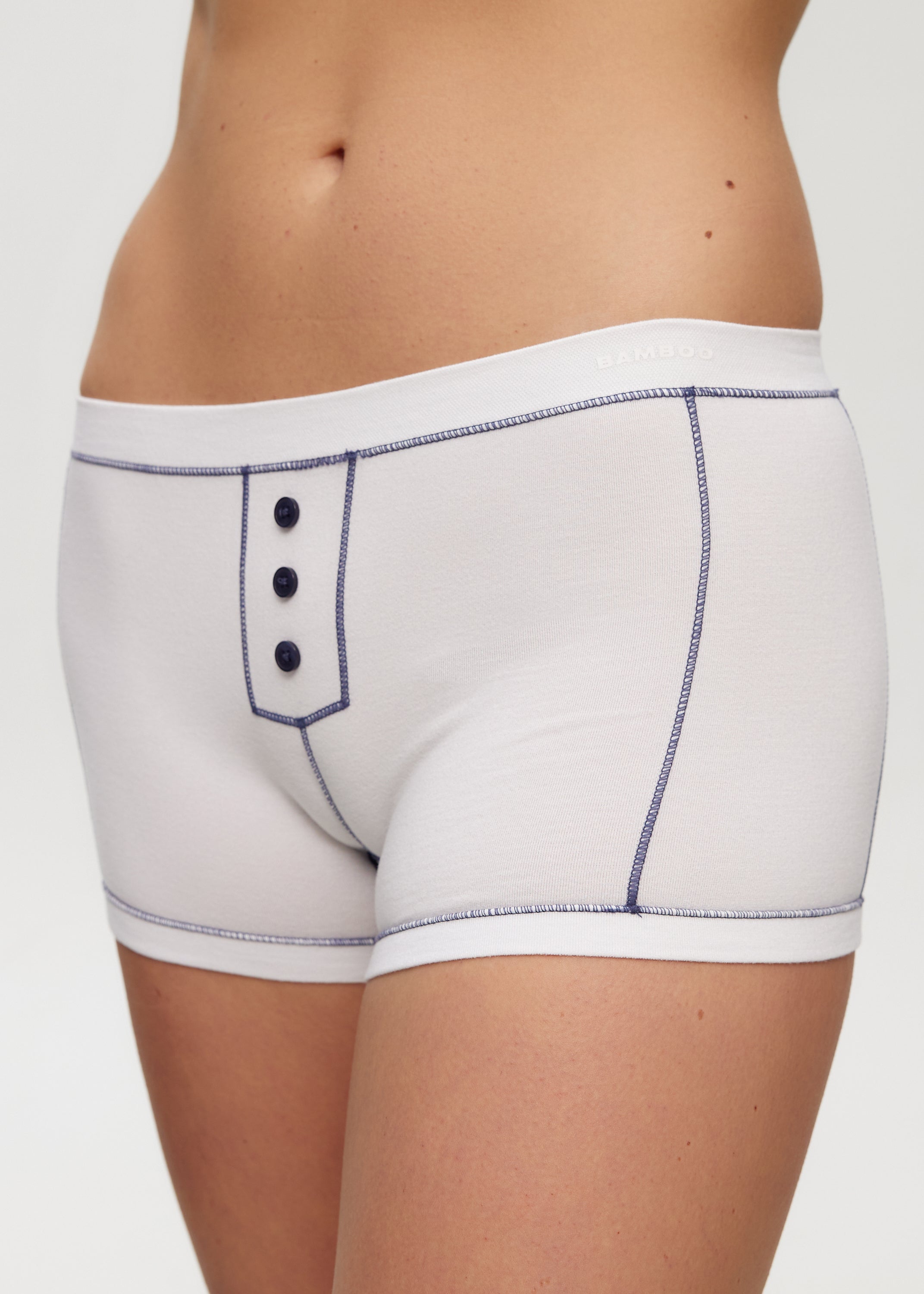 Soft, breathable, and designed for everyday comfort. Made from our natural seamless bamboo fabric, this mid-rise boyshort features vintage-inspired button detailing and contour stitching for a flattering, smooth fit.